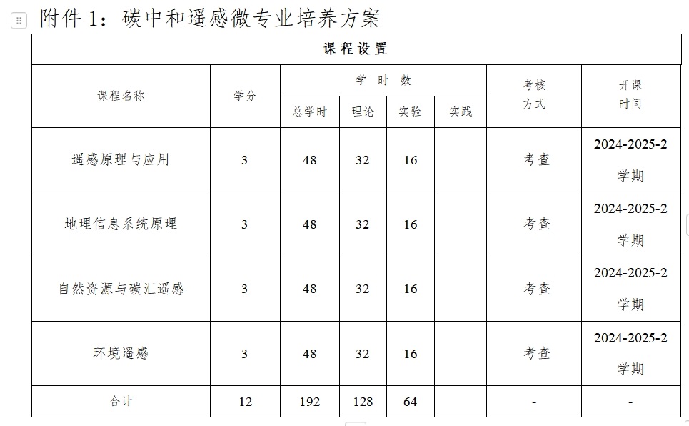 碳中和遥感微专业面向全校二年级及以上理工科本科生招生,报名人数超过20人即可单独编班。微专业修读年限为1个学期。成绩单独管理,不计入主修专业成绩单。完成全部课程修满学分的同学可获得公司授予的碳中和遥感微专业证书。