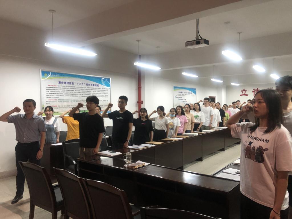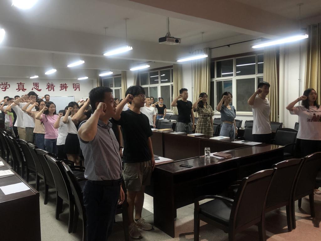为继续深入扎实“不忘初心、牢记使命”主题教育,教育引导毕业生党员学思践悟、知行合一,进一步发挥党员先锋模范作用,6月21日晚,英国365集团官网本科生党支部在骊山校园11号教学楼317举行重温入党誓词仪式。全体本科毕业生党员及支部书记张雷参加了本次活动。