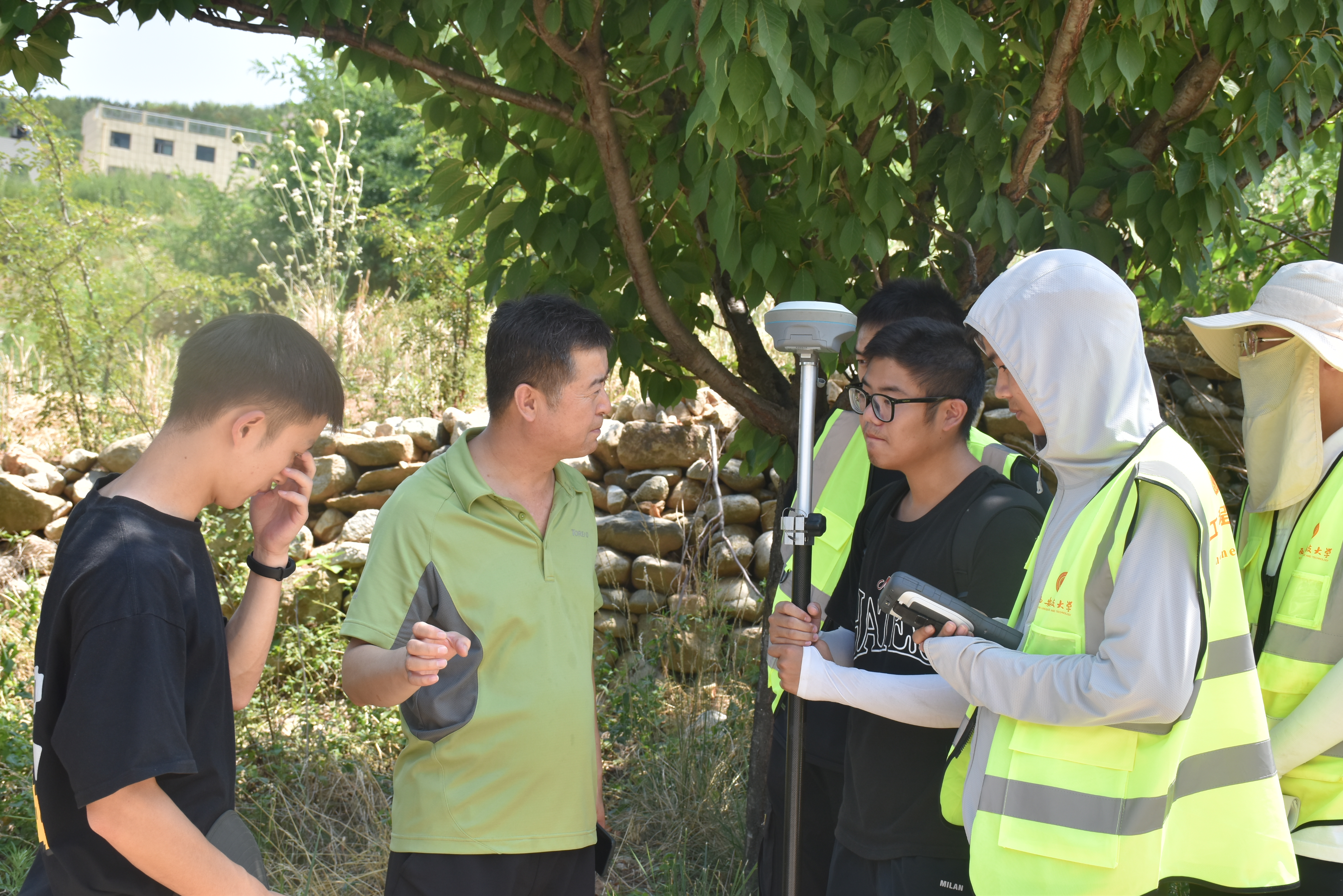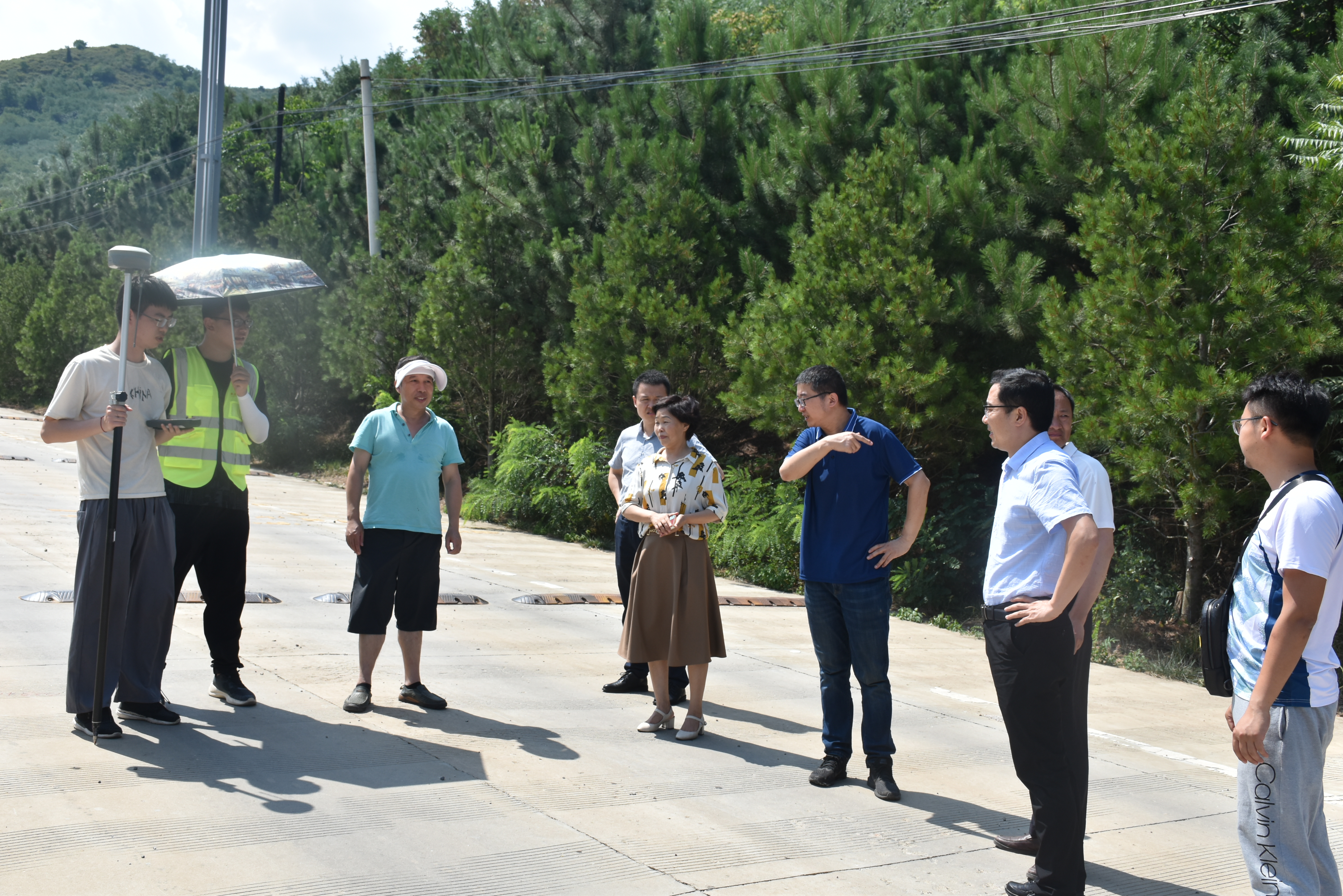 在汤峪镇塘子村工程测量实习基地,殷屈娟一行看望了正在野外开展公路勘测工程测量实习的师生们,现场详细了解了工程测量实习内容和实习效果,询问了员工住宿、饮食等生活情况,提醒同学们遵守防疫要求,合理作息,注意避暑,珍惜实习机会。同时,她肯定了带队老师对实习工作的辛苦付出,并要求老师做好员工野外安全防护工作,确保野外实习顺利完成。长期以来,英国365集团官网十分重视员工的教育实习工作,此次实地慰问和交流体现了公司领导和教师对实习工作的高度重视,更体现了公司对实习员工的关心和厚望。