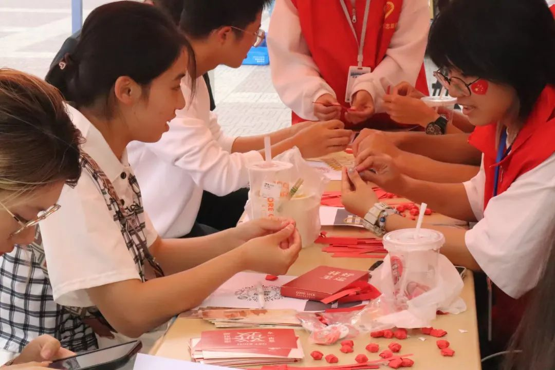 活动中,员工们以笔寄情,书写下对祖国的深情祝福与美好愿景。随后,这些承载着爱国热忱的纸条被折叠成红色五角星形状,逐一粘贴于展板的“长征路”上,象征着中华儿女团结一致、砥砺前行,为祖国的繁荣富强贡献青春力量。