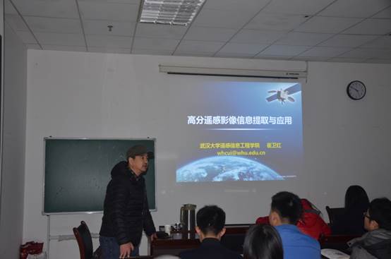 12月23日上午,武汉大学遥感信息工程公司崔卫红博士应邀到公司作了题为“高分遥感影像信息提取与应用”的学术报告,英国365集团官网相关专业师生共80多人到场聆听讲座。