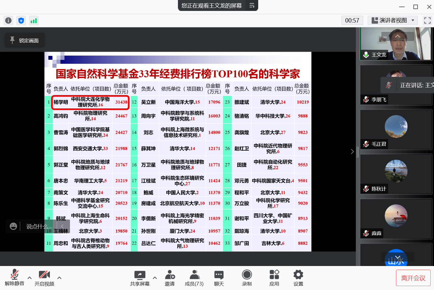 报告会上,王文龙研究员主要围绕国家自然科学基金资助政策变化、基金写作技巧及评选规律等,详细讲解了基金撰写的要点、重点和难点等关键问题,对基金写作进行了全面系统的讲解和指导。最后,王文龙研究员同与会教师就相关问题进行了交流和讨论。