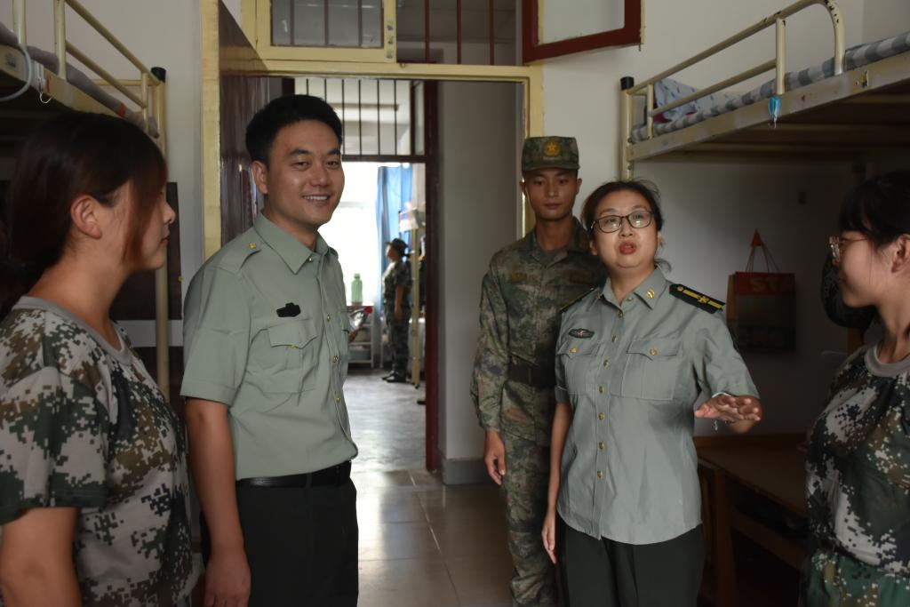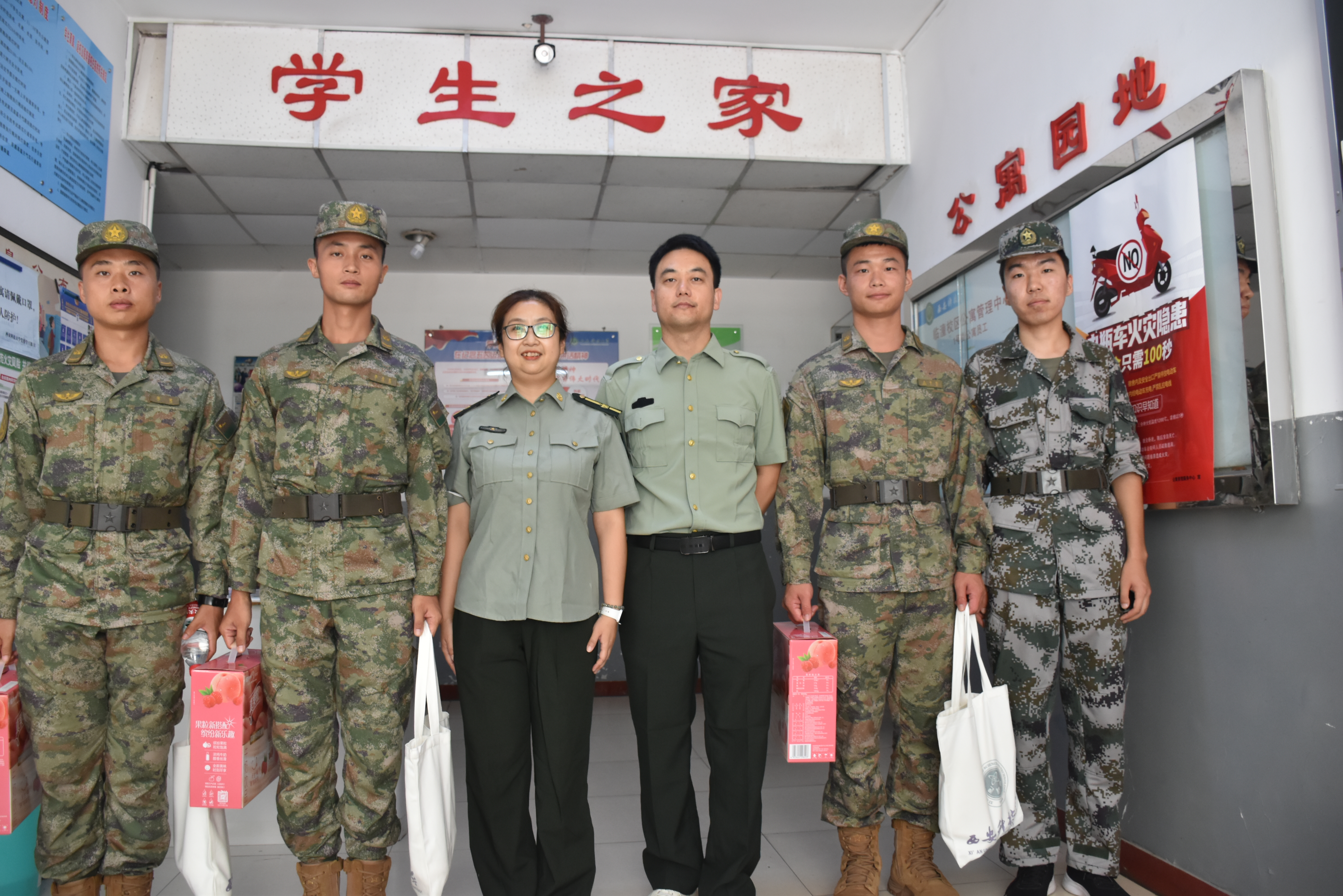 2022年8月19日下午,公司党委副书记郝卿慰问了九营教官和全体军训员工。伊始,连同教官和辅导员在宿舍走访中了解了同学们生活和军训近况,勉励同学们相互团结、相互督促,强健体魄、砥砺意志,有质量的完成本次军训任务,为接下来三年的老员工活奠定基础。随后郝书记代表公司为承训教官送上祝福,表达了对教官的感谢。