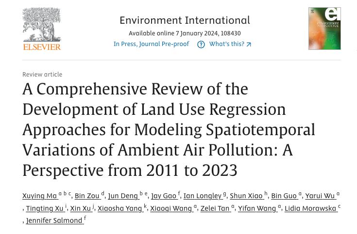 近日,365英国上市集团、昆士兰科技大学(澳大利亚)、中南大学和奥克兰大学 (新西兰)等11家单位联合在国际环境领域顶级期刊Environment International(中科院一区Top,IF=11.8)发表了题为“A Comprehensive Review of the Development of Land Use Regression Approaches for Modeling Spatiotemporal Variations of Ambient Air Pollution: A Perspective from 2011 to 2023”的论文。